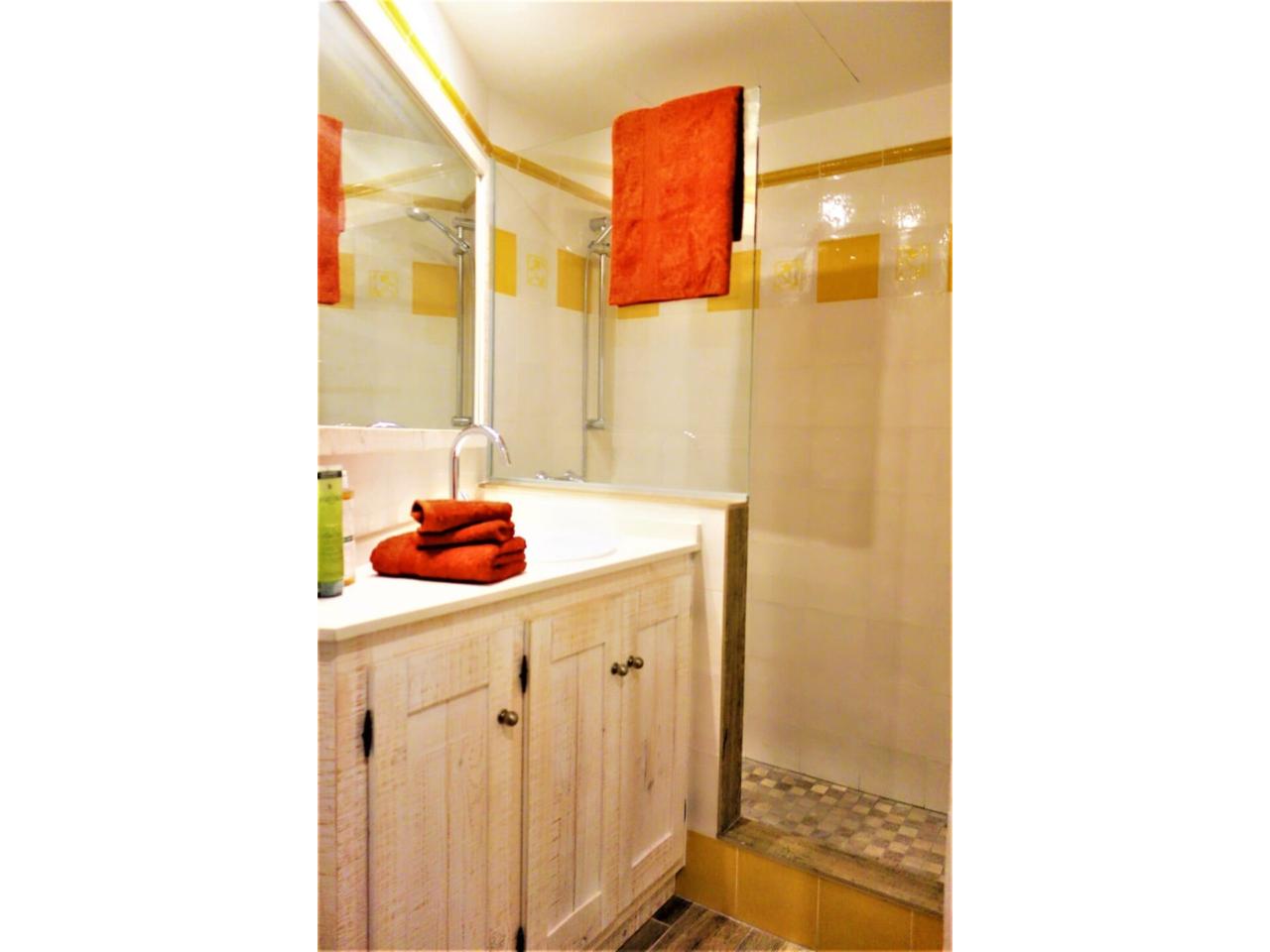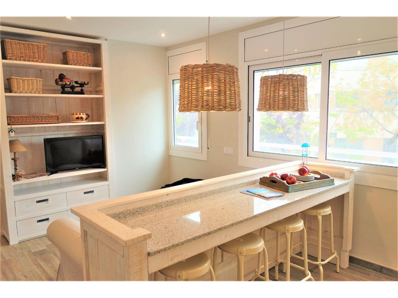 Consta de 55m2 útils distribuïts d'una forma molt pràctica aprofitant els espais i la llum de la qual disposa l'habitatge. Està distribuït en 2 habitacions, una doble i una individual totes dues exteriors, bany amb plat de dutxa i cuina americana amb menjador.